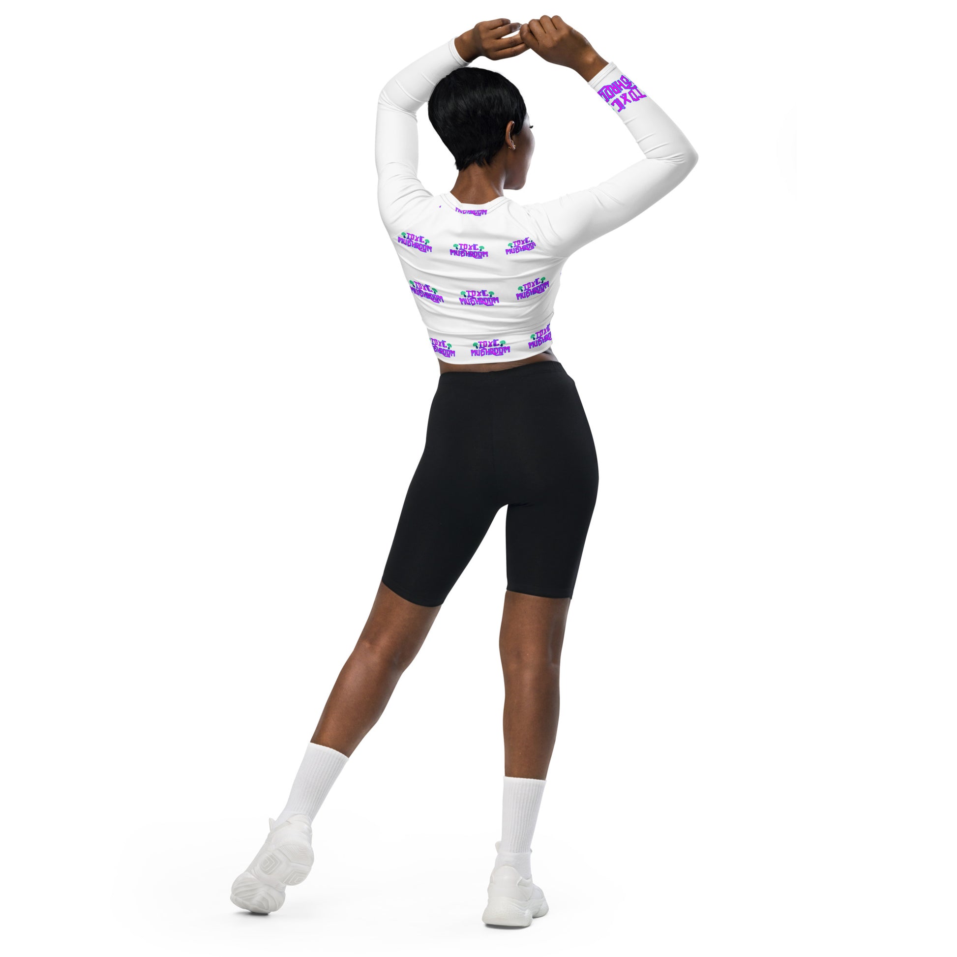 This long-sleeve crop top is made of recycled polyester and elastane, making it an eco-friendly choice for swimming, sports, or athleisure outfits. The crop top has a tear-away care label and a wide, double-layered waistline band for a comfortable fit.